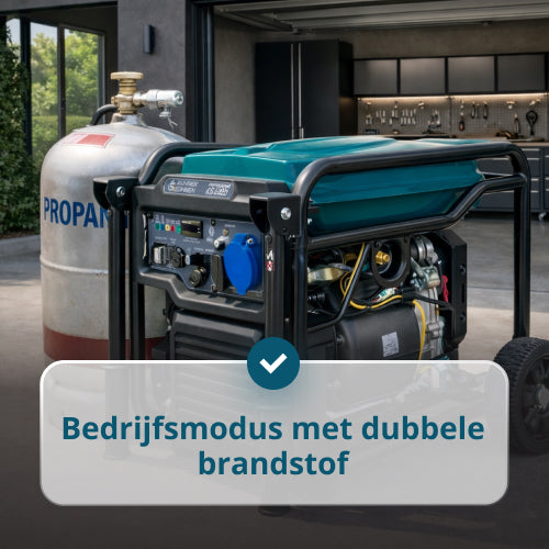 • Vysoký výkon 6,5 kW (maximální) a 6,0 kW (nominální) při provozu na benzín umožňuje spolehlivé napájení energeticky náročných zařízení a zajišťuje stabilní elektřinu, s pouze 10% snížením výkonu při provozu na plyn, což zajišťuje efektivní provoz s minimální ztrátou výkonu.