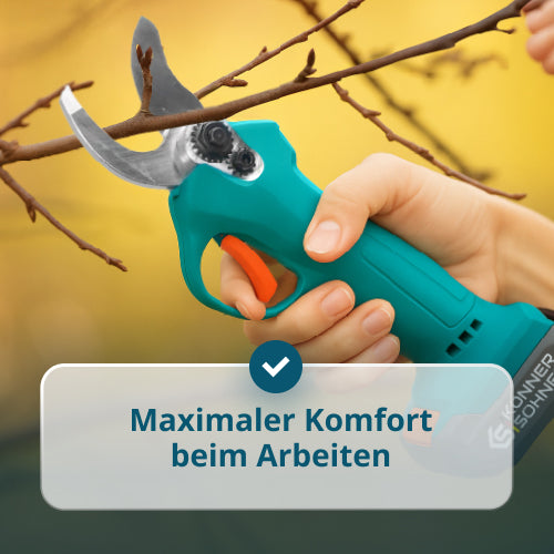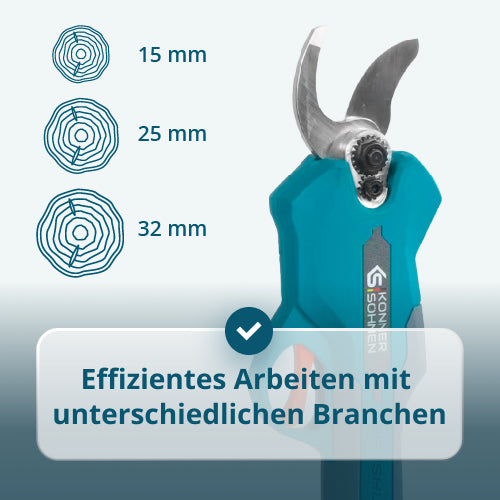 | Ausrüstung | Akku-Gartenschere, Schlüssel, Schutzkappe für Klinge, Schleifstein, Ölflasche, Bedienungsanleitung |