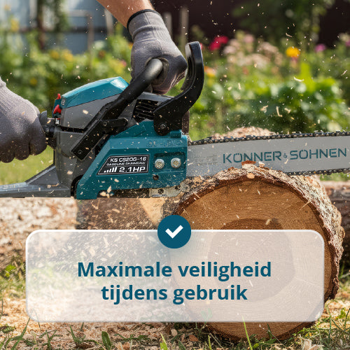 • Maximale veiligheid tijdens het werk – de inertiekettingrem stopt de ketting onmiddellijk bij terugslag, waardoor het risico op letsel wordt verminderd en er met vertrouwen kan worden gewerkt, zelfs onder zware belasting.
