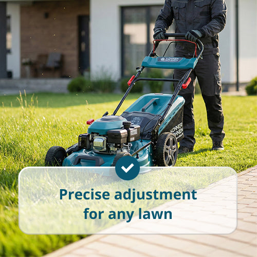 • Precise Adjustment for Any Lawn. The central adjustment has 7 height levels from 25 to 75 mm and a powerful spring, allowing easy and comfortable adaptation of the lawn mower to seasonal conditions and the desired grass height.