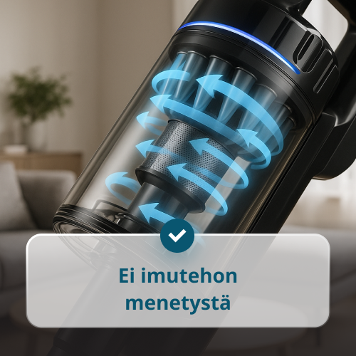 • Monisyklonijärjestelmä – ylläpitää imutehon, vaikka säiliö olisi täynnä.