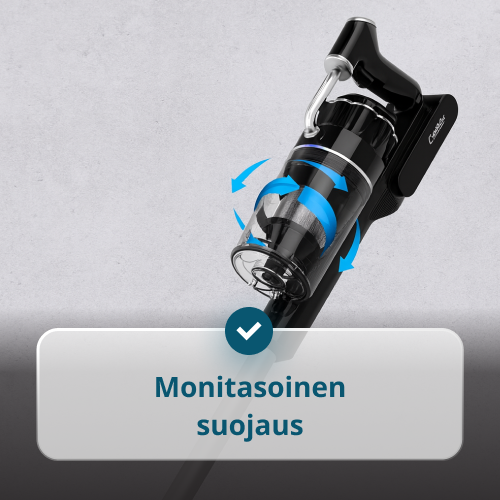 • Kaksivaiheinen suodatusjärjestelmä – vangitsee jopa hienoimmat pölyhiukkaset.