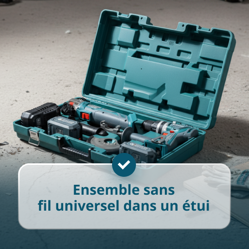 • Kit sans fil universel dans un coffret – deux outils en un : perceuse à percussion et meuleuse d’angle avec 2 batteries et un chargeur pour diverses tâches domestiques.