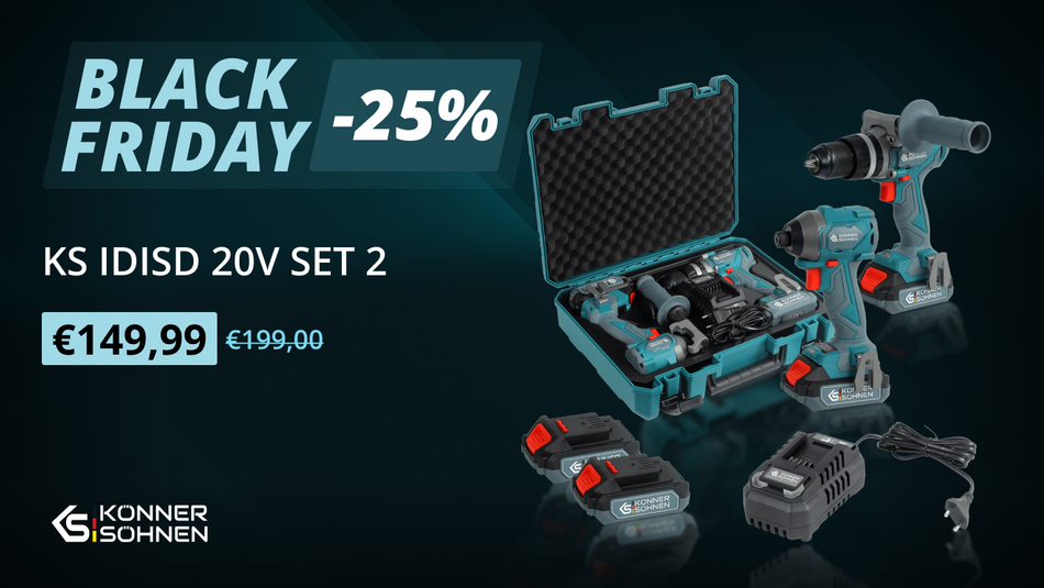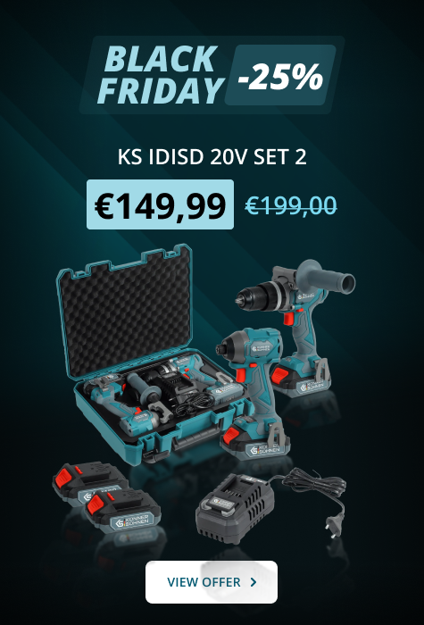 Il sistema di batteria unificato di Könner & Söhnen® garantisce la massima mobilità ed eco-compatibilità. Una batteria si adatta a tutti gli strumenti della gamma, semplificando il processo di lavoro e riducendo i costi. L'alta capacità e le capacità di ricarica rapida garantiscono un funzionamento prolungato senza interruzioni.