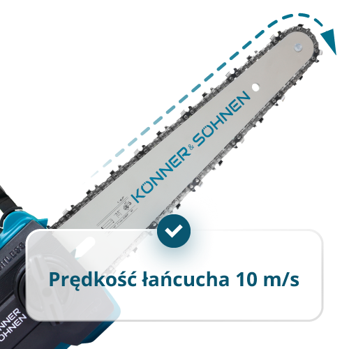 - System napinania łańcucha bez użycia narzędzi – pozwala na szybkie naciągnięcie lub wymianę łańcucha bezpośrednio w miejscu pracy, bez użycia śrubokrętów czy kluczy.
