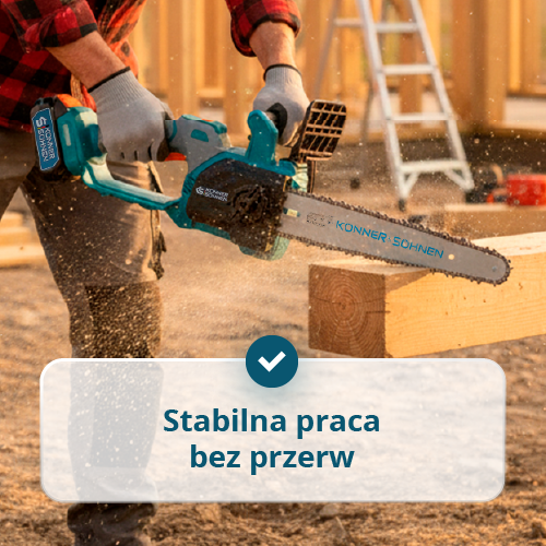 - Kompaktowa konstrukcja i niska waga – umożliwia wygodne trzymanie i łatwe manewrowanie piłą, pozwalając na pracę nawet jedną ręką, szczególnie w wąskich lub trudno dostępnych miejscach.