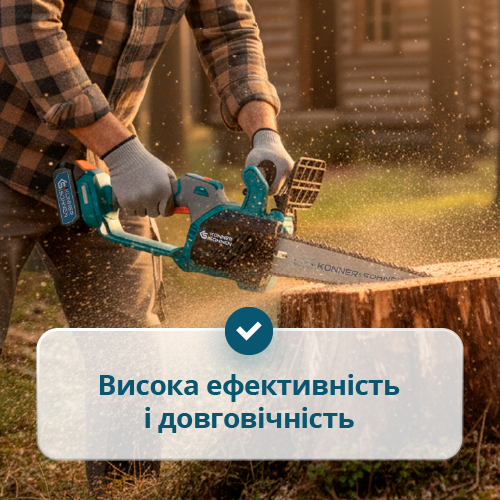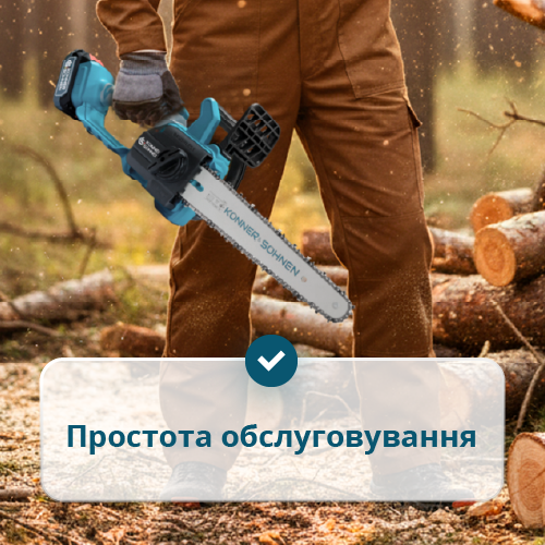 - Механізм натягування ланцюга «без інструментів» — дає змогу швидко підтягнути або замінити ланцюг прямо на робочому місці, без використання викруток чи ключів.