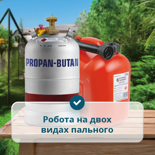 • Двопаливна система (бензин + газ) – можливість вибору палива для зниження витрат і підвищення гнучкості використання.