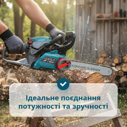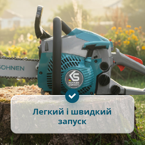 • Легкий і швидкий запуск – система поєднує автоматичну кнопку STOP, ручний паливний насос (праймер) та стартер із додатковою пружиною, забезпечуючи готовність бензопили до роботи в будь-який момент.