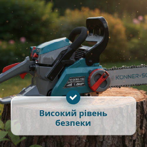 • Високий рівень безпеки – інерційне гальмо ланцюга миттєво зупиняє ланцюг при зворотному ударі, мінімізуючи ризики травм і дозволяючи працювати впевнено.