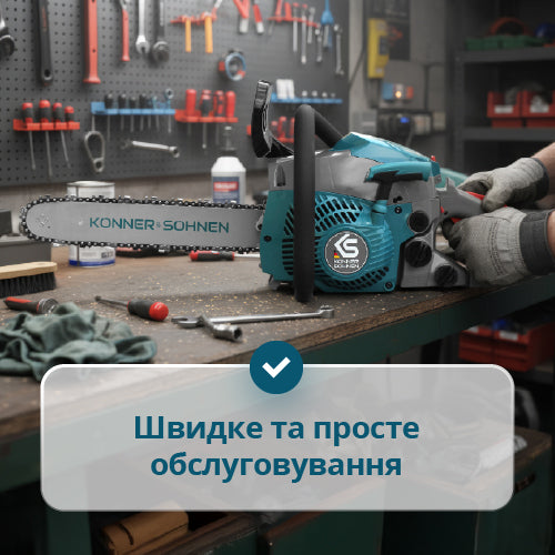 • Швидке та просте обслуговування – механізм натягування ланцюга «без інструментів» дозволяє регулювати та замінювати ланцюг без ключів чи викруток, економлячи час.