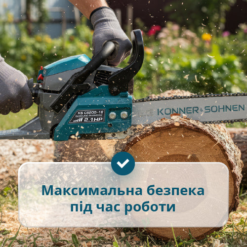 • Maximale veiligheid tijdens het werk – de inertiekettingrem stopt de ketting onmiddellijk bij terugslag, waardoor het risico op letsel wordt verminderd en er met vertrouwen kan worden gewerkt, zelfs onder zware belasting.