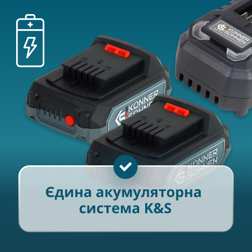 • Робота без перерв – наявність двох акумуляторів 20 В 2 А·год дозволяє один заряджати, поки працюєш з іншим.